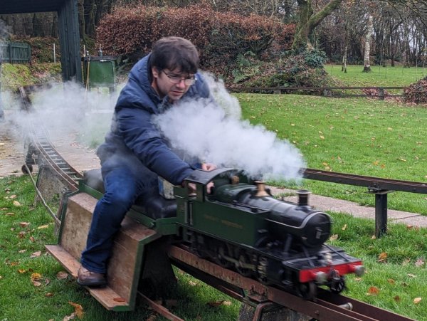 December's Picture of the MonthAlso at the September Sunday steam-up, Andy had his Prairie boiler tested. Having successfully passed, Billy took it for a run. Click here to see previous Pictures of the Month |